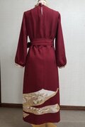 早速のご発送ありがとうございました。本日拝受し、手のかかった丁寧な縫製に見入っております。上品でモダンな色柄もデザインもとても素敵です。長く大事に着用させていただきます。共布のベルトはリボンタイやスカーフとして単品でも活用したいです。また機会がありましたらどうぞよろしくお願いいたします。