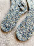 ちなみに竹串か?!ってくらい細い針で編んでるので意外と薄いです。普通の靴下と同じように履けますよ♪