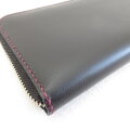◎しなやかなブラックの型押しシュリンクにワインのステッチでアクセント入れています。