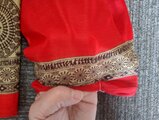 素材としても、サリーとしても、エキゾチックなボーダーが素敵なレッド系のサリー生地です。