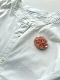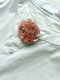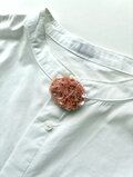 サイトの写真よりなお美しいブローチが届きました!白なのに光でさまざまな色が差し、季節を問わずどんな服にも映えそうです。 包装もとても丁寧で、作品への愛と購入者への心遣いが溢れており、とても幸せな気持ちになりました。 素敵な作品をありがとうございました!きっとまたご縁がつながる気がします。
