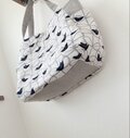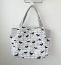 持ち手以外の部分にはすべて芯地を使用してしっかりと仕上げています。持ち手も生地を4枚重ねにして、丈夫に仕上げています。持ち手は長めにしていますので、肩掛けも可能です。