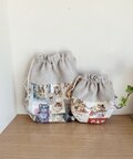 まあるいシルエットの巾着袋2つセットです。