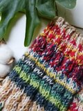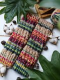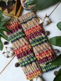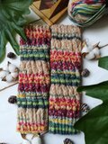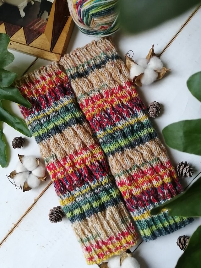 春の花をあつめた花束みたいな色合いの、手編みのスパイラル編みレッグウォーマーです。