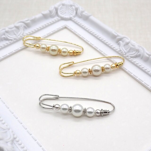 ブローチの色:ゴールド(パールの色:ナチュラル、クリーム) シルバー(パールの色:ホワイト)