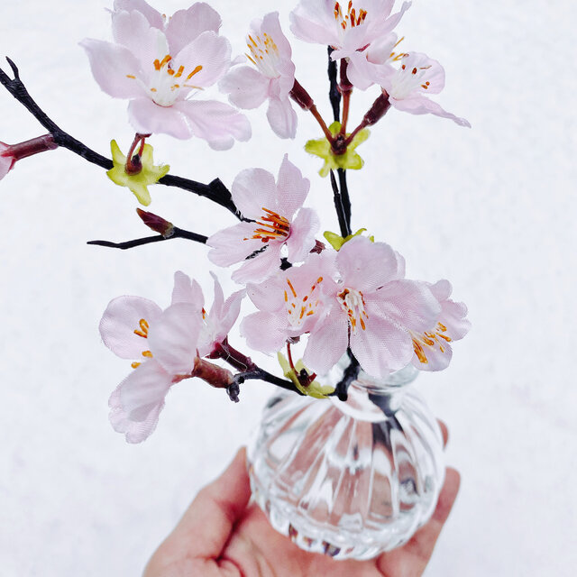 マジカルウォーターを入れ、可愛らしい桜の枝を挿しました