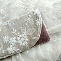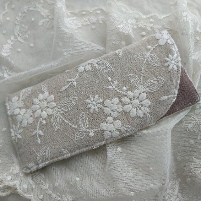 ちょっとざっくりとしたリネン色に白糸で草花が刺繍された布です。