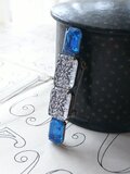 両端のBuleのカボションは最初から留められていたもので、おそらくルーサイト系(樹脂系)の素材かと思います。