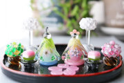 雪洞や菱餅、桜橘なども全てガラスでひとつひとつ丁寧に制作いたしました。