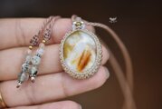 ◆このたびはナチュラルホワイト色の蝋引き糸を使用しマクラメ編み装飾を施しました。