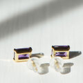 長角カットの大粒2石をK18イエローゴールドでシンプルピアスに仕立てました。
