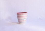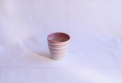 白土とピンク、青の土を練り込んだ練込轆轤成形のカップです。