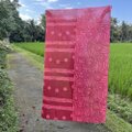 作品のお取引スムーズです。作品は落ち着いた色合いで素敵です。この大きさが首元に巻くのに私にはちょうどいいです。シルク×レーヨンの布地の肌ざわりがとても優しくて好きです。