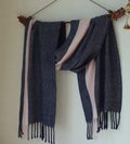 手織りカシミアマフラー・・淡ピンクのワンストライプ