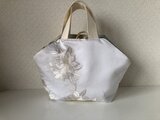 花嫁衣装の白無垢の刺繍が綺麗な部分を使って作りました。