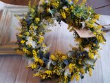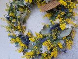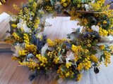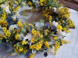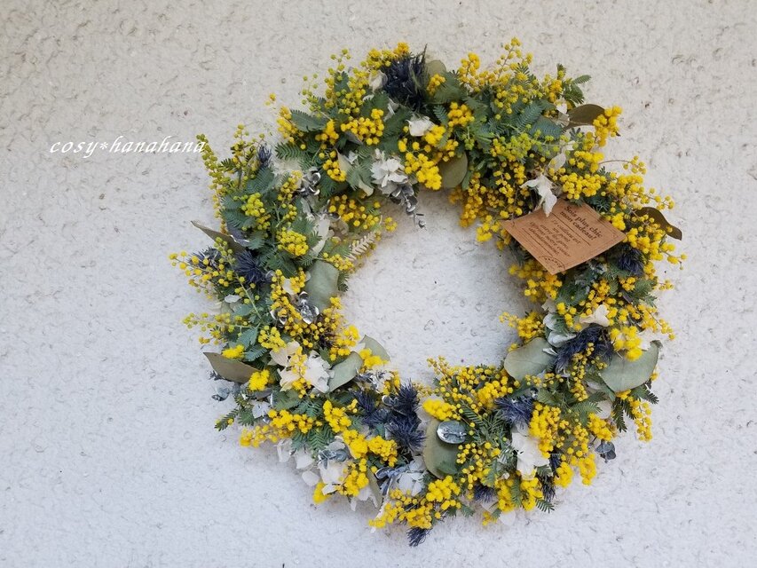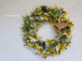 黄色とネイビーの花材と合わせてすっきりまとめました。
