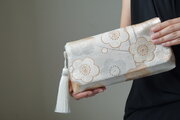 梅模様のシルバー基調のシルク帯を使った2wayクラッチ&ハンドバッグです。