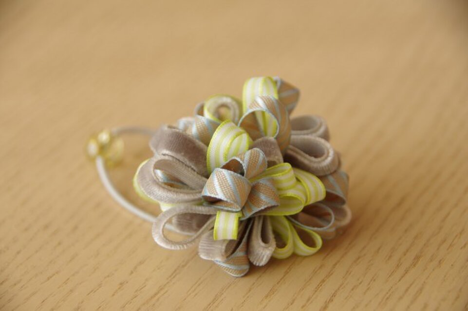 フランスリボンとベルベット調リボンを組み合わせてつくった