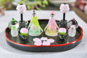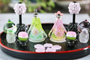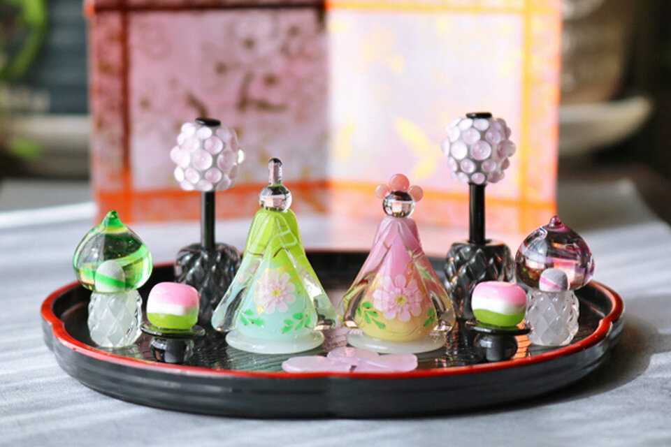 雪洞や菱餅、桜橘なども全てガラスでひとつひとつ丁寧に制作いたしました。