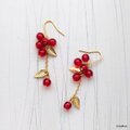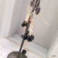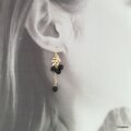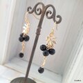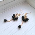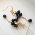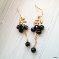 黒の丸玉ビーズを木の実に見立てたピアスです。