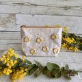 楽しいお出かけに大人かわいい手刺繍ミモザリースの小さめポーチはいかがでしょうか?