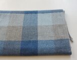 青、水色、薄茶を組み合わせて大きなチェックに織りました。