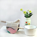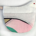 ほっこりするリメイク鳥さんオーブンミット(春をイメージした染色生地の優しい鳥さん鍋つかみ)