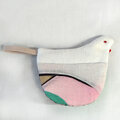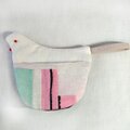 この鳥さんは、本体にオフ白の起毛コットン素材、ポケット布にリネンの染色生地をmixして優しい色合いに春をフワッと運んでくるイメージで仕立てました。ポケットの左右デザインはアシンメトリー(左右非対称)です