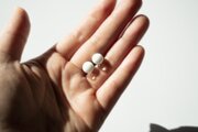 白いガラスを丸く焼成、別で透明ガラスを丸く焼成。