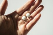 白いガラスを丸く焼成、別で透明ガラスを丸く焼成。