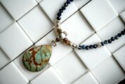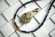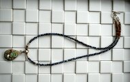 また、サファイアのネックレスとバリサイトのペンダントヘッドはバラバラになりますので、トップはお手持ちのチェーンネックレスや革ひもに通してもお使いいただけます。サファイアのネックレスも単体でおつけいただくことも可能です。