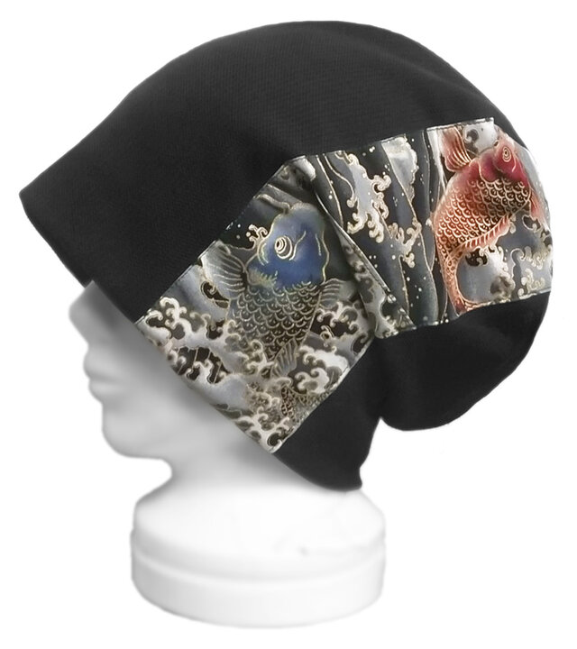 #春 #夏 #秋 #冬 #ゆったり #小顔 #和柄 #鯉 #黒 #綿 #メンズ #レディース #プレゼント #ハンドメイド #春物 #秋冬物 #ワッチキャップ #帽子