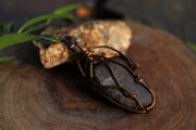 レインボーンの輝きが美しいボルダーオパール(30.7カラット)のカボッションをアンティークゴールドのワイヤーで巻きました。