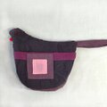 この鳥さんは、本体にオリジナルのパープル色のジャガード素材、ポケット布にリネン生地の同系色で四角い布を窓枠のようにアプリケしたアートなデザインです。