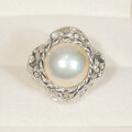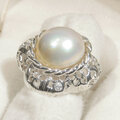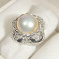 9.64ct、14mmマベパール(本真珠)とSV925の指輪(リングサイズ:11号、サイズ変更可、ロジウム厚メッキ)