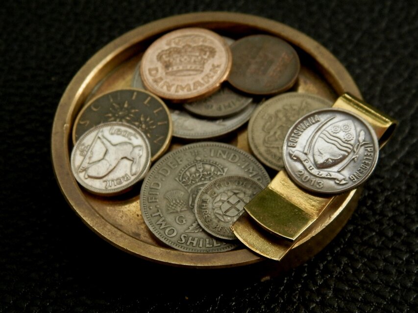ボツワナの紋章コイン10テベコインを真鍮製のマネークリップに装飾した作品です。
