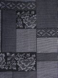 全体的に四角模様が広がり、所々に花模様や抽象模様が入ります。