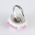 そのビーズを引き立てるように隙間なく刺繍をすると、カラフルでにぎやかで、まるでおしゃべりをしているような指輪に仕上がります。