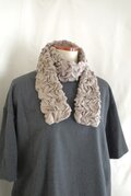 マーブル模様の立体的なスモッキング刺繡を全体に施した、シンプルな形のロングマフラーを作りました。