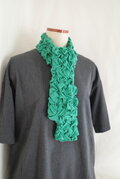 マーブル模様の立体的なスモッキング刺繡を全体に施した、シンプルな形のロングマフラーを作りました。