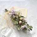 アクセントに、濃いピンクのスターチスを添えて春らしく軽やかな印象です。