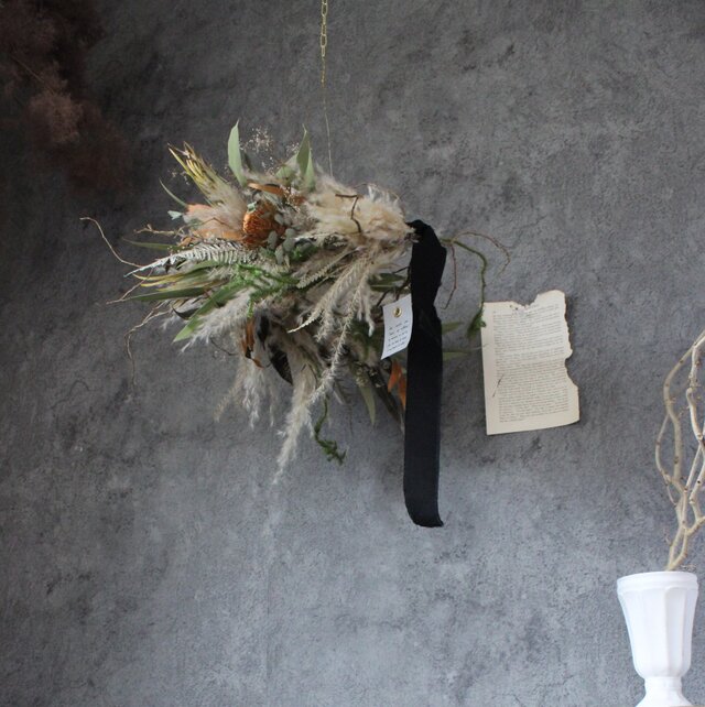 wreath[Brambling]№2 ドライアンドラとパンパスグラスのフライングリース ドライフラワーリース