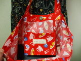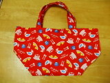 【セール品】昭和レトロ柄プリント トートバック 綿100% 赤