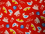 ★赤色地×昭和レトロ柄プリントの生地です