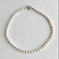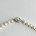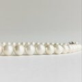 こちらは貝素材の原玉に、オリジナルパール塗料にて何層にも渡って重ね塗りを施した日本製貝パールネックレスになります。直径約8mmの貝パールネックレスで、長さは標準的なプリンセスサイズの全長約42cmとなっております。フォーマルにカジュアルにとお使い頂きやすいアイテムになっています。ネックレス用の加工糸を使った戻し加工にて仕上げしております。クラスプには樹脂パールが1粒付いた差し込みタイプを使用。カラーは、きめ細かい質感と程良いツヤ感のホワイト系パール2色をミックスして通しました。※外周にほのかなグリーン色が浮き出るホワイトグリーンと、ピンクの干渉色が浮き出るエクリュピンクの2色。
