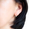耳の下にちょこんとおさまるので、お仕事中など大振りのピアスや揺れるピアスはあまり向かない場でも邪魔になりにくく、さりげなく耳元に華やかさを加えてくれます。