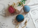 横からみますと、プリンのような形に似ていて、トップには小さな小さなチューブ型のビーズで格子型に編み込んだかのような可愛らしさを持っております。