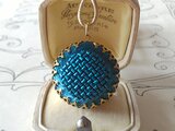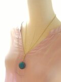 ヴィンテージ くすんだTeal-Blue色(26㎜Square・Texture)ネックレス
