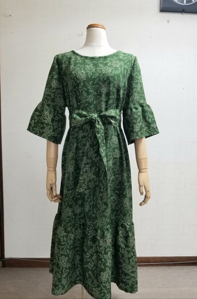 早速のご発送ありがとうございました。本日拝受し、手のかかった丁寧な縫製に見入っております。上品でモダンな色柄もデザインもとても素敵です。長く大事に着用させていただきます。共布のベルトはリボンタイやスカーフとして単品でも活用したいです。また機会がありましたらどうぞよろしくお願いいたします。