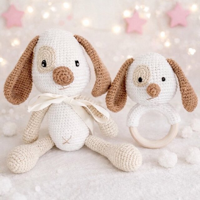 ⭐︎ お買得セット⭐︎あみぐるみ 編みぐるみ いぬ ラトル 出産祝い 女の子 男の子 おもちゃ 子供 誕生日 孫